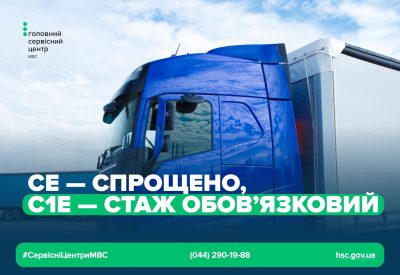 Життя та професійна діяльність водіїв часто потребують розширення прав на керування різними видами транспортних засобів. Найпопулярнішими категоріями для водіїв-професіоналів, а також військових є категорії CЕ та С1E, які дають право керувати вантажними автомобілями з причепом. Якщо Ви вирішили відкрити одну з цих категорій, то порядок їхнього отримання відрізняється. Під час дії воєнного стану для категорії CЕ запроваджено спрощену процедуру. Водночас для категорії С1E вимога щодо стажу залишається обов’язковою. Щоб уникнути непорозумінь, пояснюємо детально. Що означають категорії СE і С1E Категорія С1E — дає право керувати транспортними засобами категорії С1 (вантажні автомобілі масою до 7,5 т) з причепом масою понад 750 кг. Категорія CЕ — дозволяє керувати вантажними автомобілями категорії С з причепом або напівпричепом загальною масою понад 750 кг, якщо сам тягач понад 3.5 тонни. Категорія CЕ: діє спрощена система отримання  Відповідно до постанови Кабінету Міністрів України № 1122, на період дії воєнного стану в Україні запроваджено спрощену процедуру отримання категорії CЕ за наявності посвідчення водія категорії С. Головне спрощення — для отримання категорії CЕ не вимагається стаж керування транспортними засобами категорії С протягом одного року, як це передбачалося раніше. Вік та загальні вимоги Щоб отримати право керування транспортними засобами категорії CЕ, кандидат повинен бути не молодшим 19 років та: мати посвідчення водія категорії С (дозволяється будь-якою датою відкриття); пройти навчання (перепідготовку) в акредитованому навчальному закладі; успішно скласти практичний іспит у сервісному центрі МВС. Теоретичний іспит не складається, оскільки водій уже має відкриту категорію С. Запроваджене спрощення дозволяє скоротити час підготовки водіїв та сприяє забезпеченню потреб транспортної галузі. Категорія С1E: обов’язково мати відкриту категорію С1 мінімум 1 рік  На відміну від категорії CЕ, для отримання категорії С1E спрощена процедура не застосовується. Для відкриття категорії С1E кандидат повинен: мати відкриту категорію С1 не менше 1 року на момент звернення у ТСЦ МВС; пройти відповідну підготовку в автошколі; скласти практичний іспит у сервісному центрі МВС. Вимога щодо стажу для категорії С1E залишається чинною, не скасована і діє без виключень. Як звернутися до сервісного центру МВС Щоб розпочати процедуру отримання посвідчення водія, на категорії CЕ або С1E, необхідно: Звернутися до сервісного центру МВС. Підготувати пакет документів:  паспорт, або документ, що підтверджує особу; реєстраційний номер облікової картки платника податків; медичну довідку; документ, що підтверджує проходження навчання. Зареєструватися на іспит через систему Е-запис або під час візиту. Успішно скласти практичний іспит з навичок керування транспортним засобом. Іспити проводяться за попереднім записом-онлайн, зокрема через мобільний застосунок Е-запис, що дає змогу краще спланувати візит і зменшити навантаження на сервісні центри МВС. Консультацію щодо послуг сервісних центрів МВС можна отримати за телефоном (044) 290-19-88 або на сторінках Головного сервісного центру МВС в Фейсбук та Інстаграм. Відповіді на найпоширеніші питання та корисну інформацію черпайте на сайті.