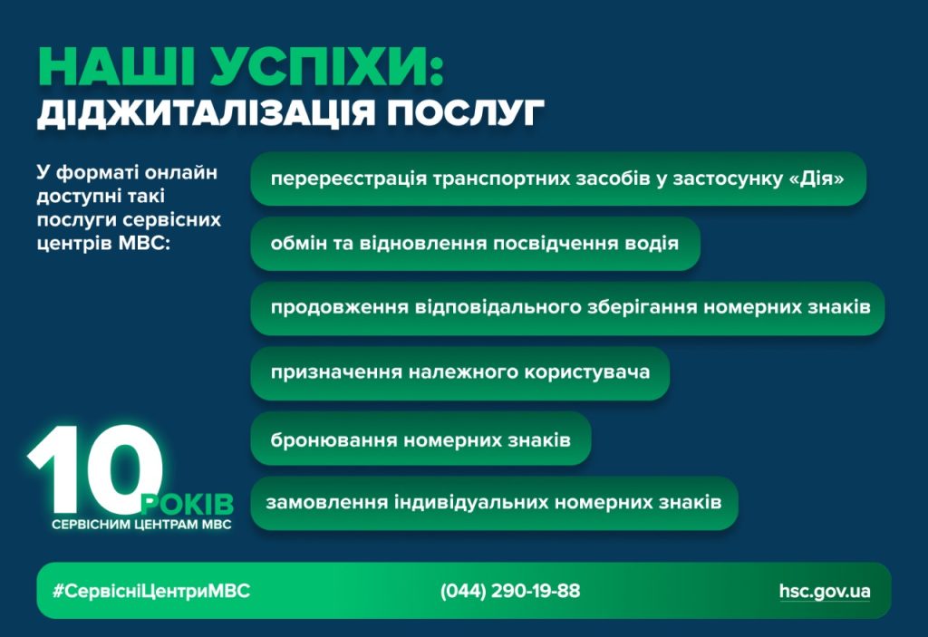 За 10 років ми досягли багато, але впровадження електронних сервісів та послуг – це справжній прорив! Їх стає дедалі більше, а попит зростає з року в рік. Адже завдяки автоматизації процесів в будь-який час доби та незалежно від місця перебування можна обрати та забронювати номерні знаки, призначити належного користувача, перереєструвати автівку чи обміняти посвідчення водія. Завдяки автоматизації процесів ми спостерігаємо підвищення ефективності та продуктивності роботи підрозділів та задоволення серед громадян.