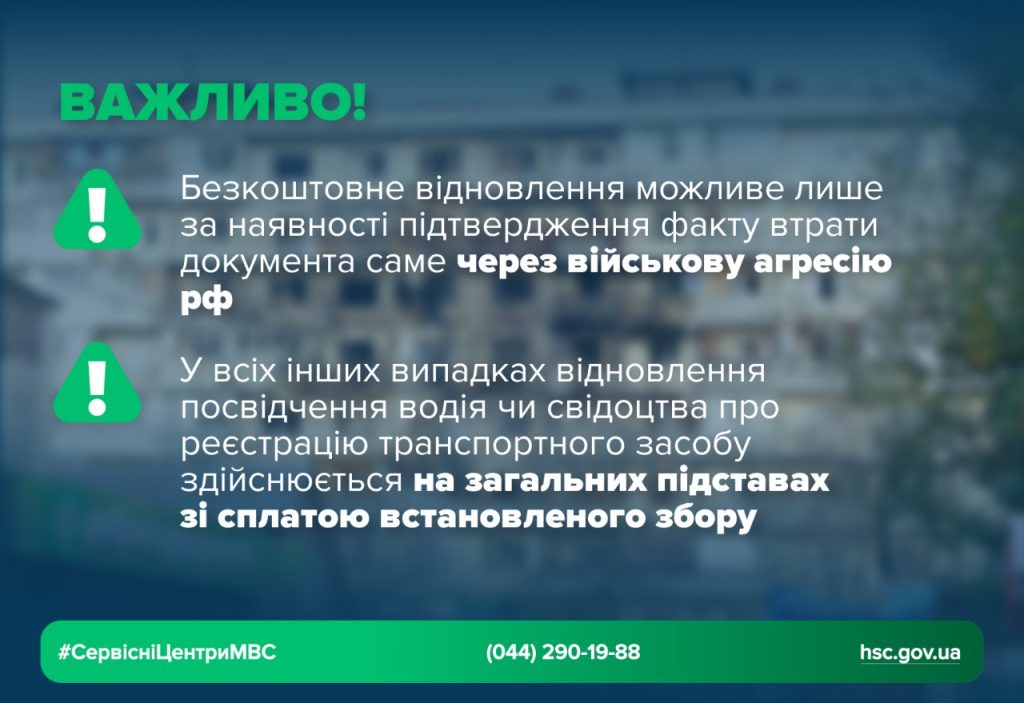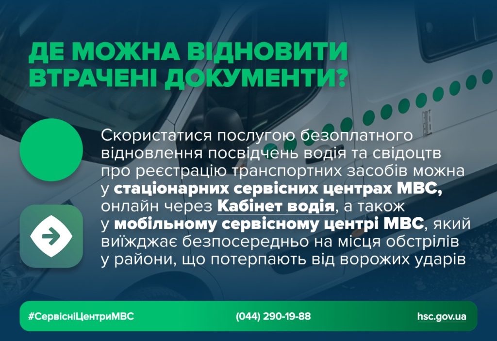 - Отримати відновлене посвідчення водія чи свідоцтво про реєстрацію транспортного засобу без жодних витрат.