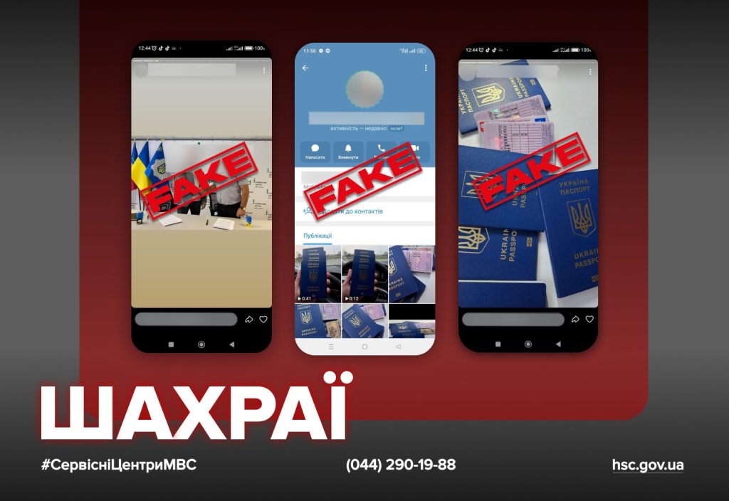 Нещодавно у Telegram ми виявили фейковий акаунт нібито начальника регіонального сервісного центру МВС у Дніпропетровській та Запорізькій областях. З використанням фото з офіційних зустрічей та заходів за його участю шахраї пропонують виготовити офіційні водійські документи. Більше того, обіцяють навіть закордонний паспорт. Мета одна – завоювати довіру користувачів, створити вигляд, що ці особи нібито дійсно працюють в сервісному центрі МВС та можуть виготовити справжні документи.