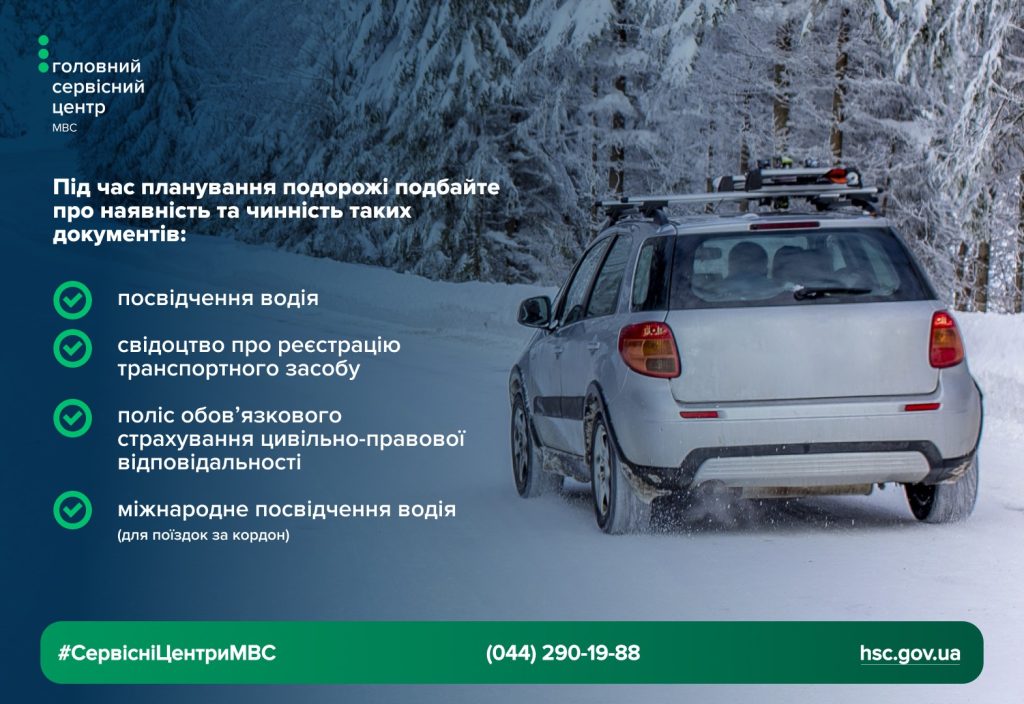 У період новорічних свят кількість поїздок українськими дорогами традиційно зростає. Складні зимові погодні умови, ожеледиця та обмежена видимість потребують від водіїв особливої уважності та відповідальної підготовки. Сервісні центри МВС радять заздалегідь перевірити наявність і чинність основних документів, аби святкова подорож не була затьмарена непередбачуваними ситуаціями в дорозі.