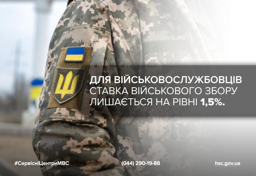 Для військовослужбовців ставка військового збору лишається на рівні 1,5%.