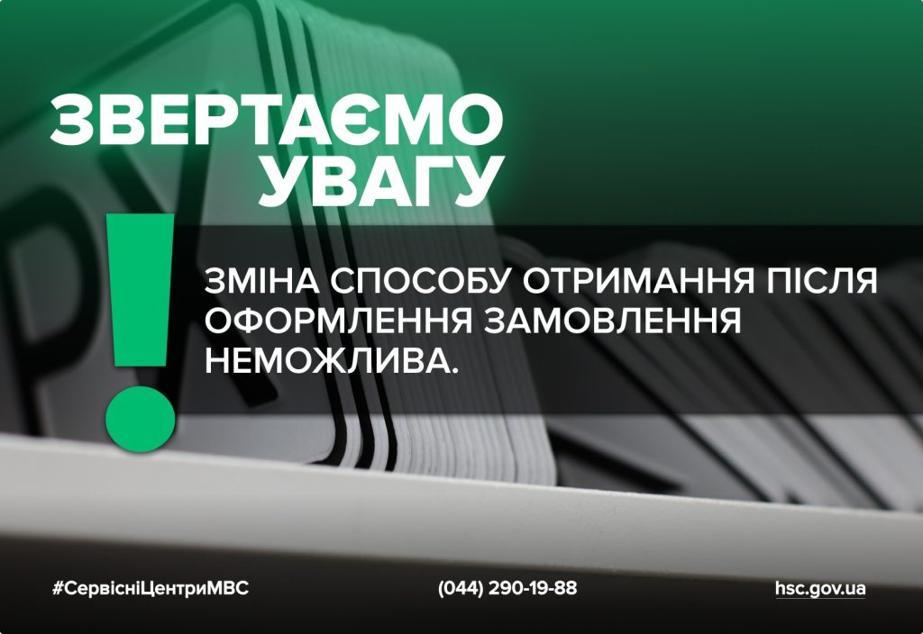 Зверніть увагу, що зміну способу отримання після оформлення замовлення неможливо. Якщо під час замовлення обрано доставку, отримати ІНЗ необхідно через обране відділення «Нової Пошти». Якщо ж номер обирався в ТСЦ МВС або онлайн було обрано самовивіз — отримати номер можна лише в управлінні стандартизації ГСЦ МВС у Києві.