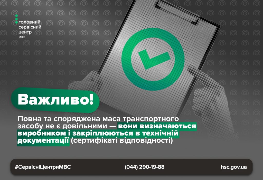 Маса транспортного засобу не є довільною — вона визначається заводом-виробником і закріплюються в технічній документації (сертифікаті відповідності), яка є підставою для внесення даних до реєстру під час першої реєстрації автомобіля в Україні.